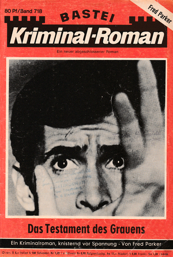 Alle Romane erschienen ohne Nummerierung. Der erste Band war laut Editorial: “Das geheimnisvolle Testament”. Er wurde unter dem Verlagspseudonym Fred Parker in der Heftreihe BASTEI KRIMINAL-ROMAN als Nr. 718 unter dem geänderten Titel “Das Testament des Grauens” nachgedruckt.